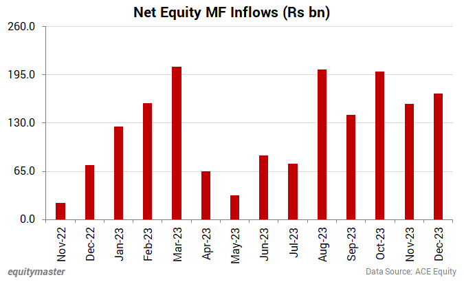 These continuous inflows come on the back of a rally in equity markets as Sensex and Nifty rose around 8% in December 2023.