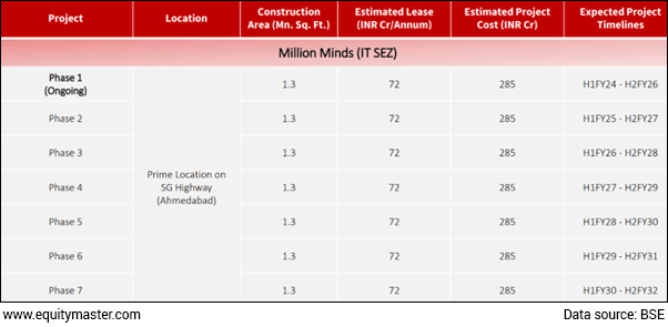 One of its big landmark projects - Million Minds Phase 1 (IT SEZ) where construction is underway is approaching 30% completion.