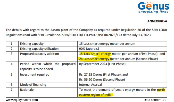In its latest earnings presentation, the company has shown a detailed breakup of its 1st expansion in smart meter segment.