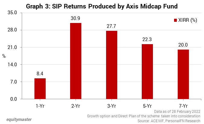 A Rs 5,000 monthly SIP in Axis Midcap Fund at remarkable 27.7% XIRR in three years, grew to Rs 2.82 lakh as of 28 February 2022.