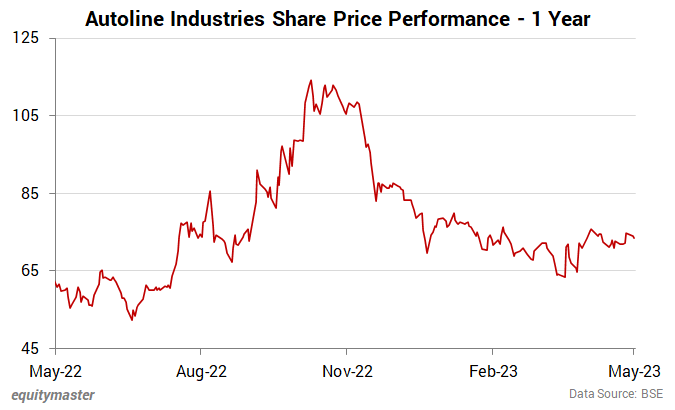 Over the last one month, Autoline Industries share price is down by 1%. In 2023 so far, the stock is trading lower by 6%.