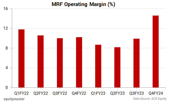 MRF reversed the trend and improved its operating margin for the second straight quarter. Prior to this, the company's margins were on a decline for a stretch.