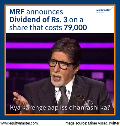 You might remember ITC facing a lot of criticism and hate due to its laggard performance. Similarly, when MRF declares dividends, investors are not very excited as it doesn't really matter if a highly priced stock declared a lower dividend payout.