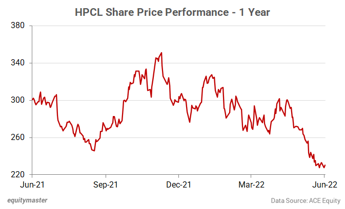 For the March 2022 quarter, HPCL reported a 40% YoY decline in net profit due to a decline in marketing margins. The company's revenue increased only marginally.