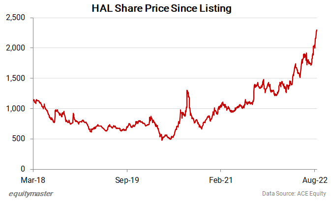 Next on our list we have a defence PSU company Hindustan Aeronautics (HAL).