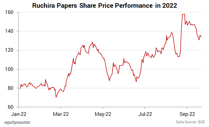 Ruchira Paper's share price is down 10.9% in the past month. However, so far in 2022, the shares are trading higher by 69.6%.