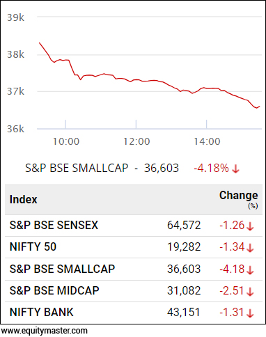 Broader markets were hammered to an even greater extent. Look at the chart of the BSE smallcap index in yesterday's trade.