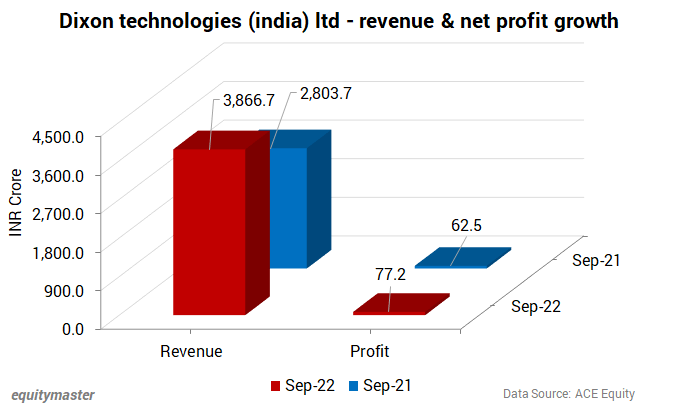 Net profit of Dixon Technologies rose 23.3% to Rs 772.5 m in the quarter ended September 2022 as against Rs 626.4 m during the previous quarter ended September 2021.