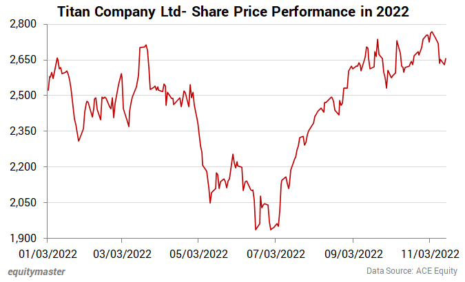 For the financial year ended 31 March 2022, the Nifty 50 company derived almost 88% of its revenue from its jewellery division. It sells jewellery through its brands Tanishq, Zoya, Mia, and Caratlane.