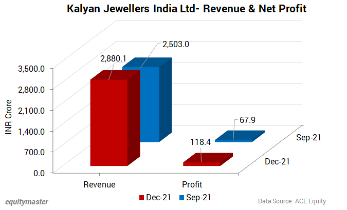 The company had reported significant growth in revenue and profit in the December, quarter of 2021 due to the wedding season with revenue and profit jumping 15% and 74% respectively over the September 2021 quarter.