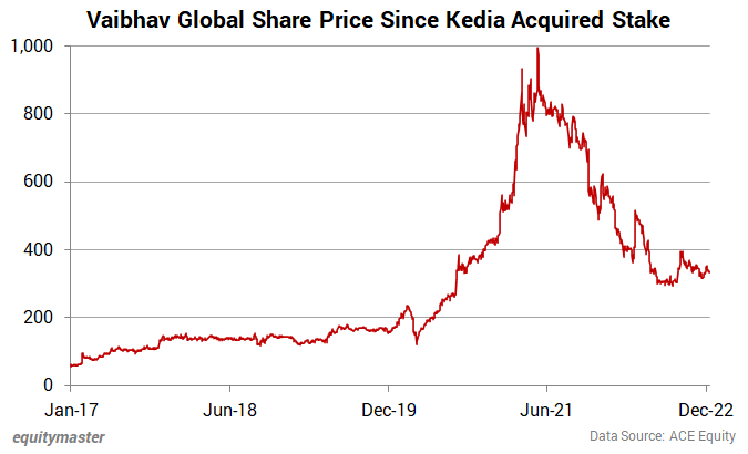 Here's how Kedia's holding in Vaibhav Global has varied ever since he acquired stake in 2017.
