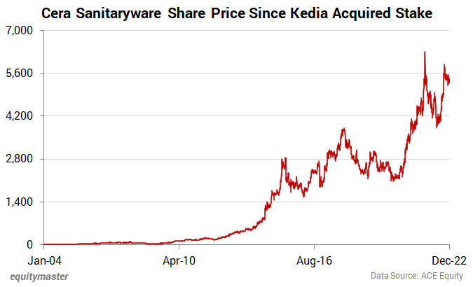 Considering Cera's current market price of Rs 5,364 as on 13 December 2022, Vijay Kedia's total value in the company comes to around Rs 0.7 bn.