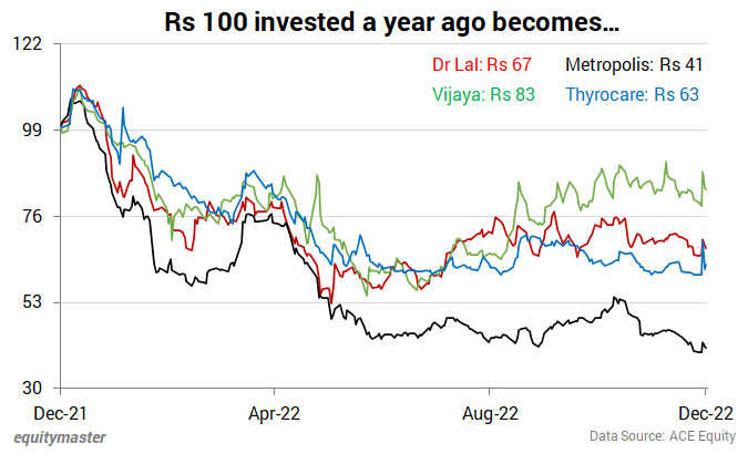 The biggest players in the space include Dr Lal Path Labs, Metropolis Healthcare, Thyrocare, and the recently listed Vijaya Diagnostics.