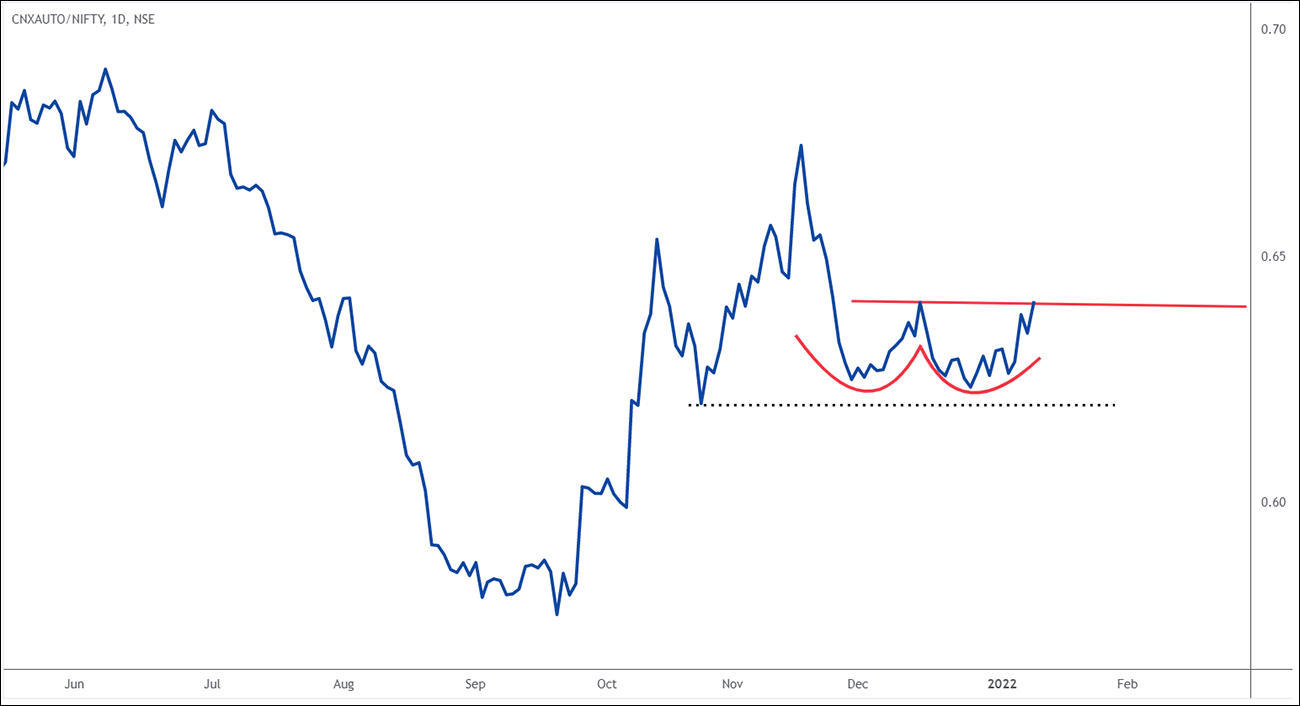 Now it's time that auto index will outperform against in Nifty and double bottom is a sign where it forms the huge basing structure and then the momentum begins. So we are on the cusp of breaking out of the double bottom structure right at the neckline.