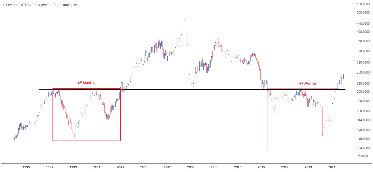The breakdown which happened and the breakout which happened now in 2021, again it took around 69 months. If you look at 1997 to 2003, when the breakout happened, we saw a huge chunk of the rally. The momentum was very fast and furious. I'm not expecting that the momentum will be so fast and furious for next 3-4 years. But yes, the breakout is very, very strong and looking at the momentum, I would definitely look at the commodity space into my bucket. Once the money starts flowing over there, that could be an exciting opportunity.
