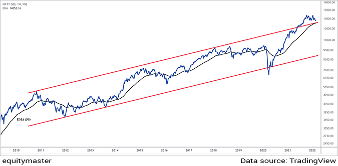 So if you look at the first chart over here, this is Nifty 500 chart on a larger scale from 2010. And this is a weekly scale chart which I have been showing you.