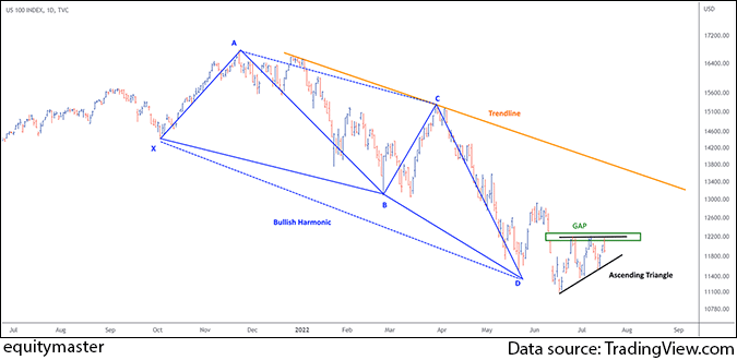 But if I look at the structure of the NASDAQ over here, there are multiple structures indicating that the reversal can be on the cards.