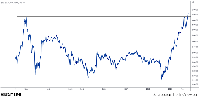 In case you miss the metals sector in 2021, at the start of 2021 as well, I have highlighted that the year could be of the year of metals if you remember. If you have missed the metals rally, I think you should not miss the power rally which is more four-five months of rally, probably six months of rally where I'm expecting another 20-25% in the power index. So keep a watch on this index.