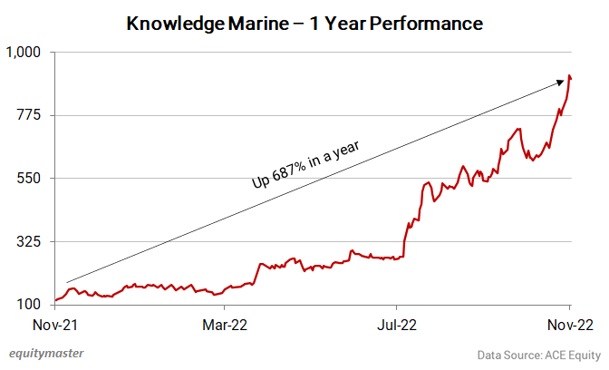 Shares of the company have gained 687% in the past one year. In November 2022 so far, shares are up around 36%.