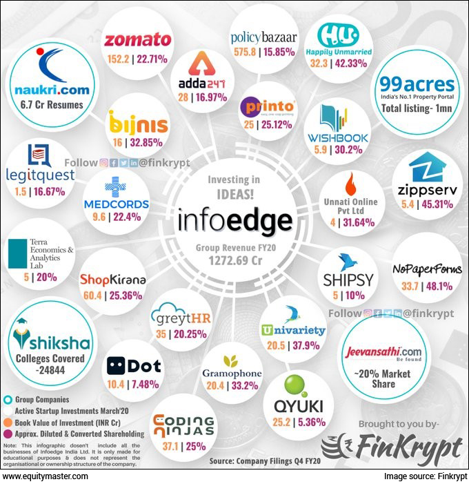 In fact, some of these businesses are chasing opportunities in new areas. Do you remember, me writing about Zomato's foray into the fintech space last week? Well, the digital world allows companies to accelerate the pace of testing and failing at new ideas. Info Edge and its subsidiaries may continue to do so.