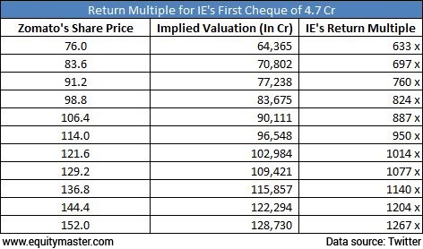 Turned out the shareholders of Info Edge had made a neat 1,000 times profit on Zomato on its listing!