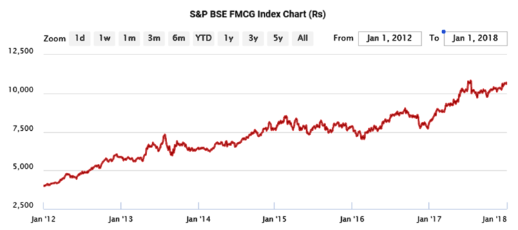 The BSE FMCG index gave a steady 15% CAGR over 2012-2018 period, when the capital goods sector had stalled.
