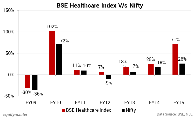 The right time to invest was 2009-2010 when export business was looking promising. The 6-year period from 2010-2015 led to strong outperformance of the pharma sector compared to the Nifty.