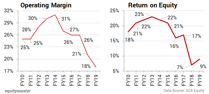While margins were on an uptrend till FY16, the stocks peaked out before it was reflected in fundamentals a year later. The smart money knew the era of margin expansion was ending.