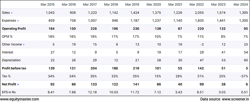If you look at the last row i.e. the EPS, I think we can give the company an average EPS of Rs 4 share. In other words, I believe it can earn an EPS of Rs 4 per share in a normal year.