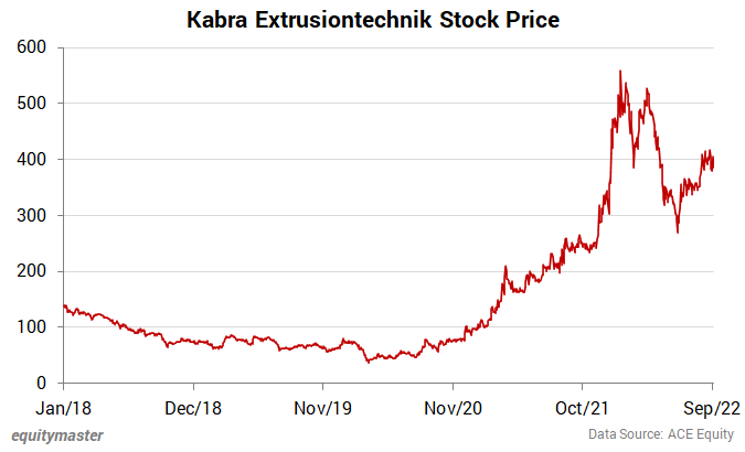 This is the performance of a stock, Kabra Extrusiontechnik, that I recommended in Hidden Treasure, in January 2018, with a horizon of three to five years.